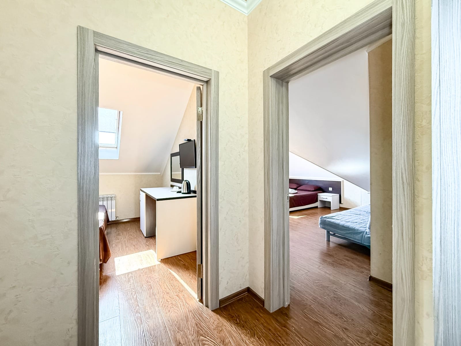 Территория отеля небольшая, но функциональная. Перед зданием обустроена площадка для автомобилей. С балконов открывается прекрасный вид на окрестности. По соседству с гостиницей расположены частные строения и сады. В ближайшем окружении есть недорогие кафе, рестораны и магазины. В 1 км от отеля есть отличный центр развлечений «Морская Аллея», где весело проводить время всей семьей. Музей «город кубанских мастеров», Старый Парк, Дельфинарий, Дом вверх дном.
