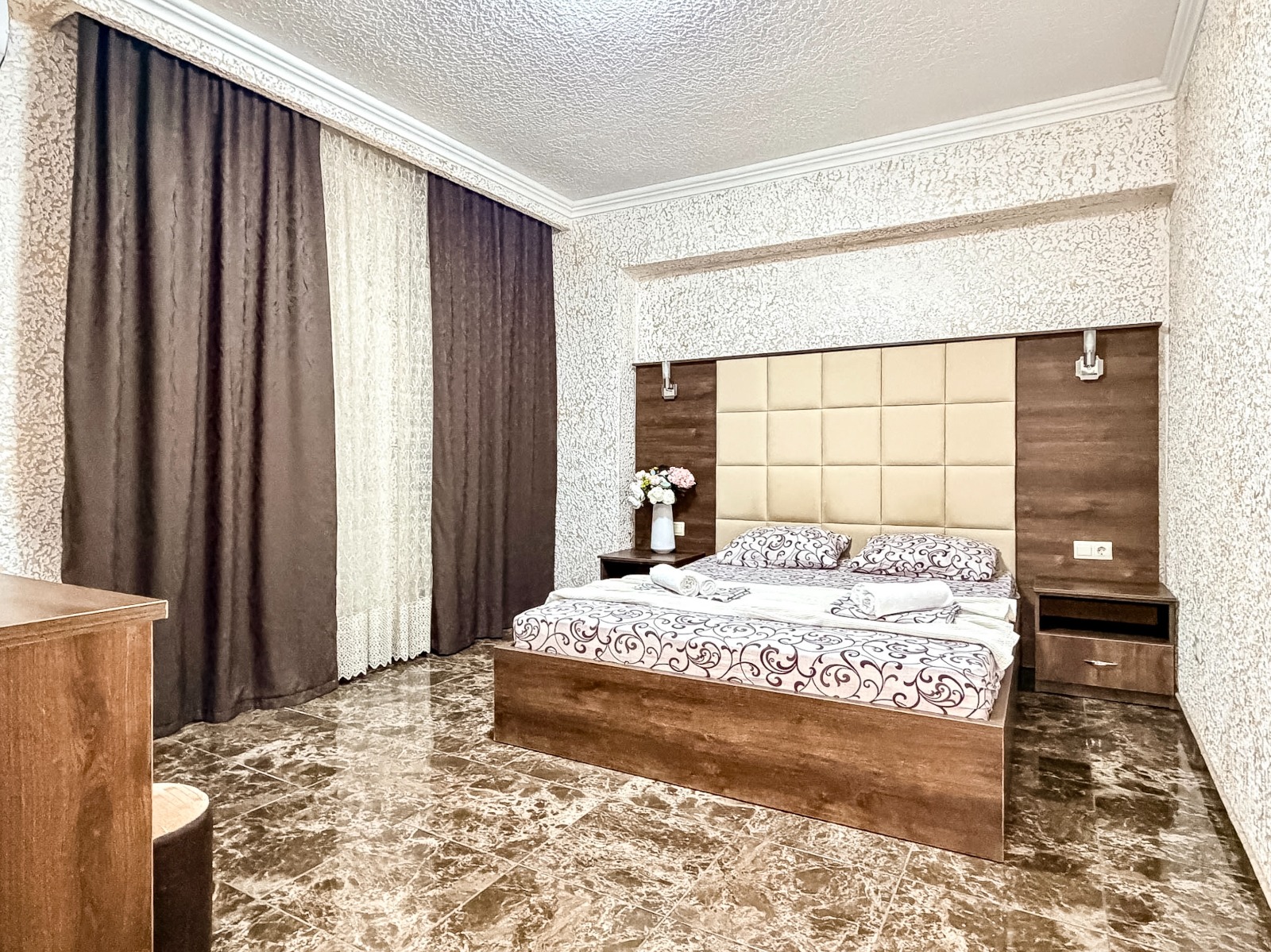 - Все номера с качественным, ультрасовременным ремонтом. Все они оснащены необходимой мебелью, кондиционером, телевизором, холодильником, сейфом и личной ванной комнатой с душем и феном