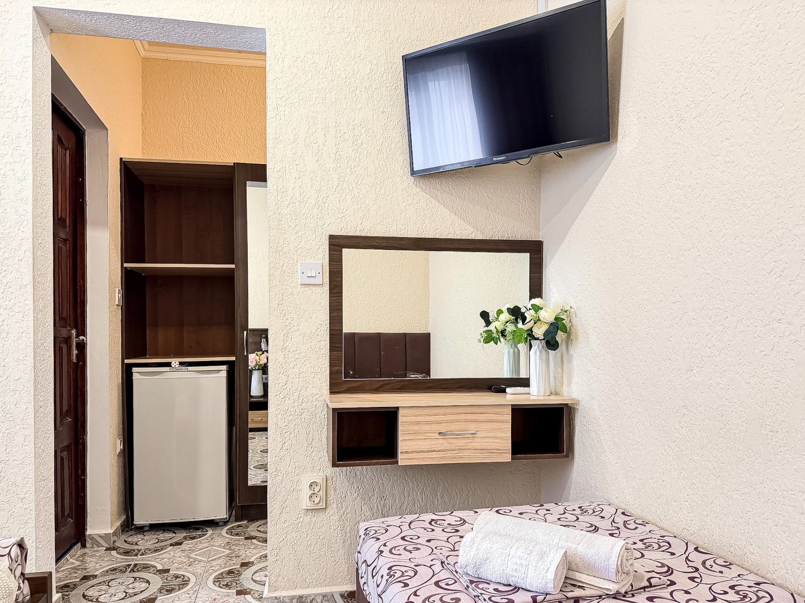 - Современные оборудованные номера: кондиционер, холодильник, телевизор, душ, c/у, электрический чайник;