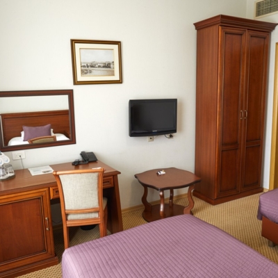 - При бронировании трёхместного номера, предоставляется размещение категории TWIN+ EXB (стандартный номер с двумя раздельными кроватями + дополнительное спальное место( возможно еврораскладушка))