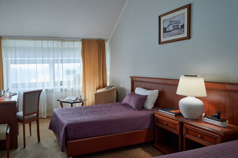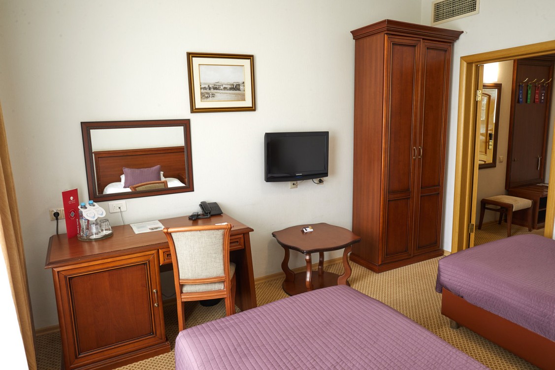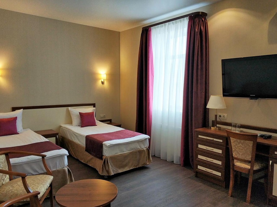 К услугам гостей уютные одноместные и двухместные номера, а также номера Люкс. В отеле четыре конференц-зала вместимостью от 25 до 300 персон, ресторан «Цветной бульвар» с русской и европейской кухней, банкетный зал с видом на исторический центр города. Гости отеля могут бесплатно посетить крытый бассейн с подогревом и инфракрасную кабину, а также поставить автомобиль на парковку.