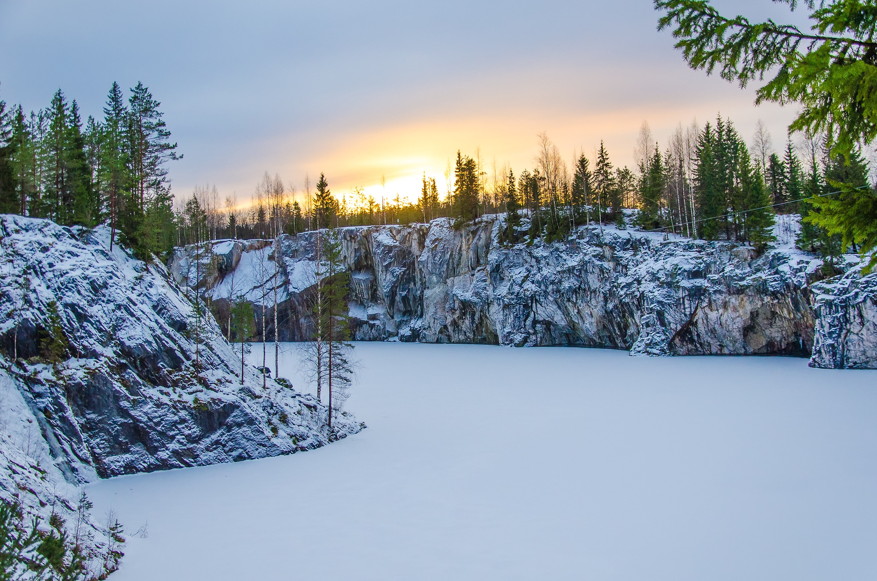 14:30 - Экскурсия по горному парку «Рускеала» – это уникальный мраморный каньон с изумрудной прозрачной водой и мраморными гротами. Мы посетим экскурсию «Мраморный каньон», в которой будет обзорная экскурсия по мраморному каньону, в подземную часть карьера мы заглянем через провал «мраморное сердце». У вас будет возможность увидеть главную изюминку зимнего парка – завораживающую вечернюю подсветку, превращающую мраморный каньон в сказочный дворец. Кристальные стены, покрытые инеем играют всеми оттенками северного сияния, создавая неповторимые визуальные эффекты. Сказочное фото гарантированно каждому!